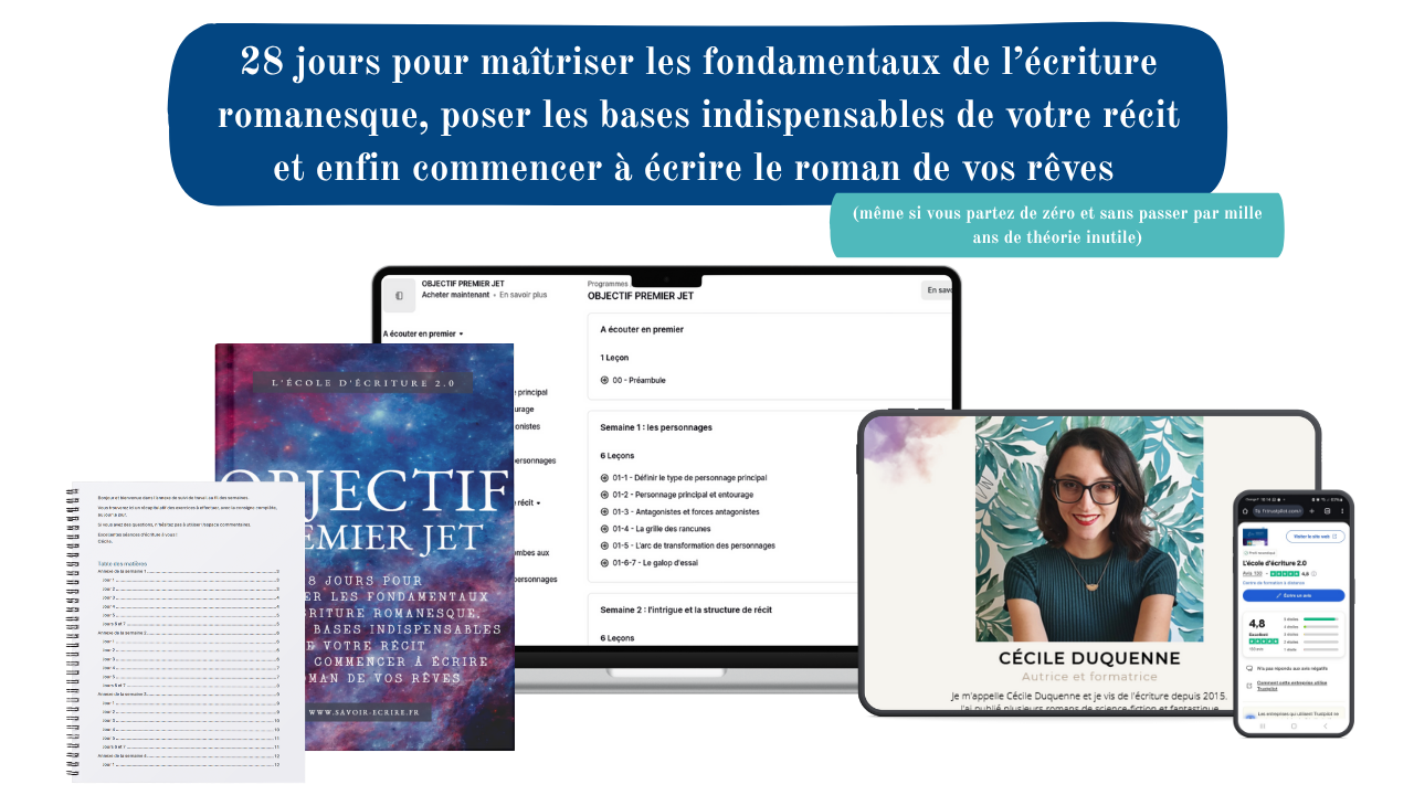 28 jours pour maîtriser les fondamentaux de l’écriture romanesque, poser les bases indispensables de votre récit et enfin commencer à écrire le roman de vos rêves